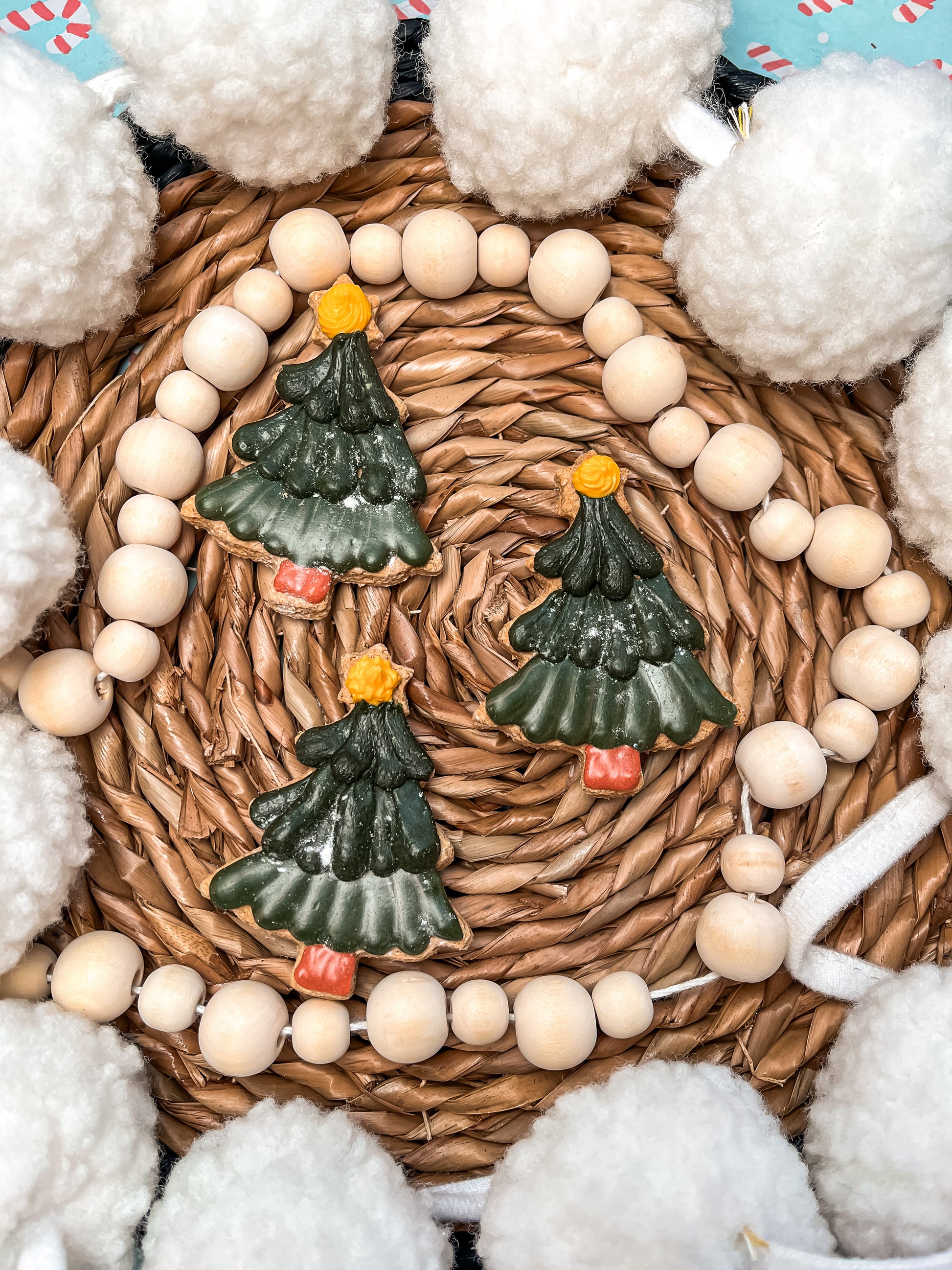 Oat flour, peanut butter, dog friendly icing (if your dog has any allergies please feel free to contact us for any further information about or icing ingredients)